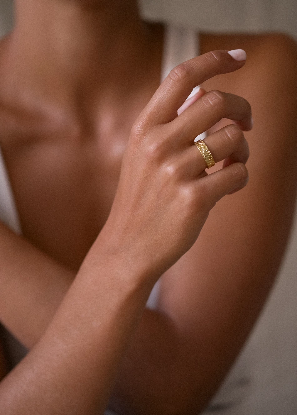 This thick ring with rough finish is the perfect basic ring for your day to day and you can combine it with other rings to get a beautiful look!