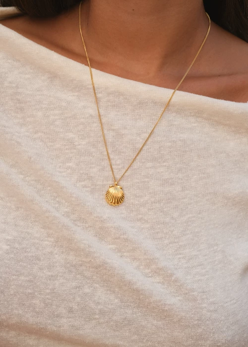 Colgante con forma de concha marina. Collar de Plata de Ley 925 con baño de oro de 18k o baño de rodio.
