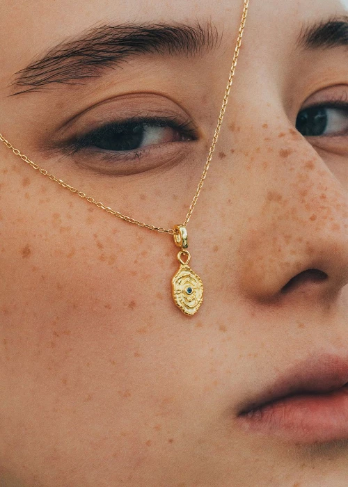 Detalle: Colgante con un brillo azul.