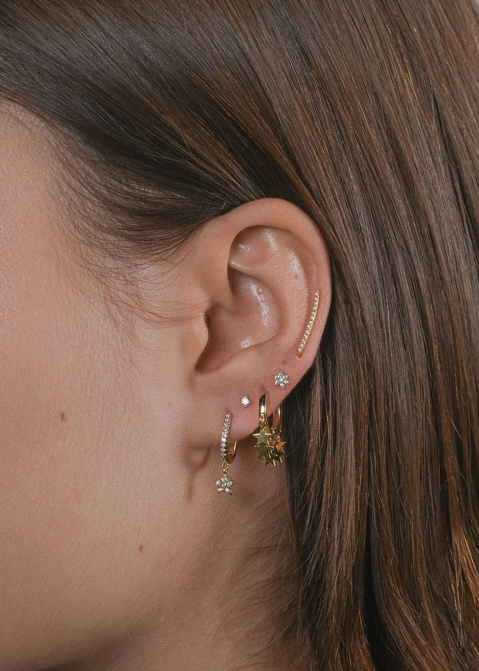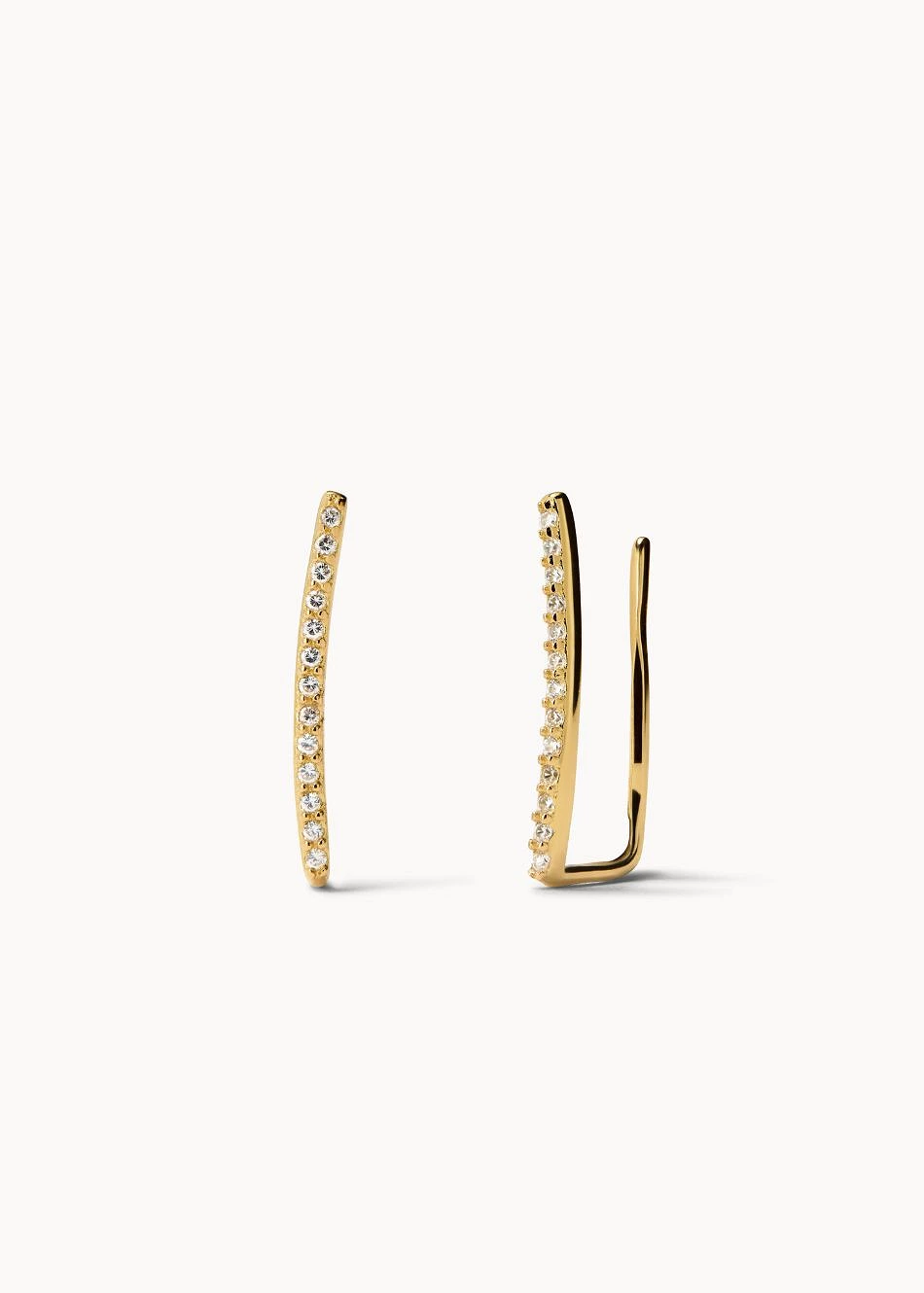 Una línea fina que se adapta al lóbulo y se eleva suavemente, decorada con circonitas blancas. Los trepadores Lyra son un diseño delicado que alargan visualmente la oreja.