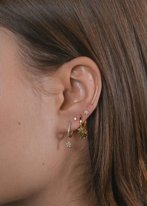 Piercing con diseño en forma de estrella decorada con circonitas blancas, que aportan un brillo elegante y atemporal a cualquier combinación.
