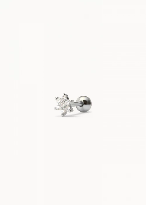 Piercing con diseño en forma de estrella decorada con circonitas blancas, que aportan un brillo elegante y atemporal a cualquier combinación.
